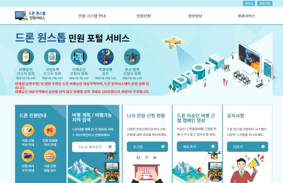 드론원스톱민원서비스 시스템을 운영하고 있습니다.